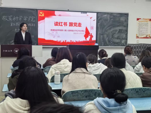 本网讯(文/官佳怡、图/官佳怡、蒋宇航)2025年11月13日,教育科学学院于行知楼103教室有序开展第52期入党积极分子第三次党课培训。教育科学学院及旅游与地理科学学院60余名入党积极分子参加此次培训学习。