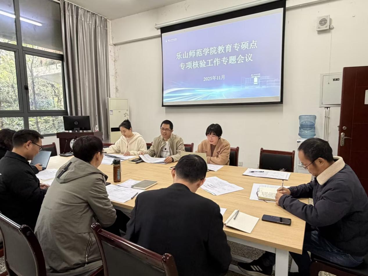 (本网讯 图、文/张学)为切实保障我校教育硕士专业学位研究生培养质量,11月19日下午,乐山师范学院在教育科学学院会议室召开教育专硕点专项核验工作专题会议。研究生处相关负责人,以及教育科学学院、特殊教育学院、文化与历史学院、马克思主义学院、外国语学院等相关学院院长、副院长参加会议。